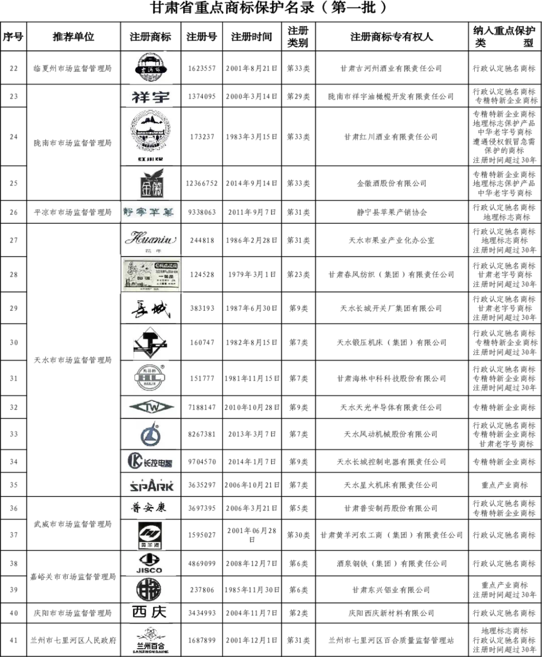 2024年11月23日,甘肅省市場監(jiān)督管理局公布了《甘肅省重點(diǎn)商標(biāo)保護(hù)名錄(第一批)》,“隴星及圖”商標(biāo)成功入選。