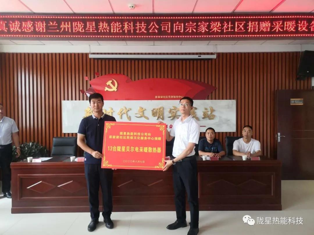 隴星熱能科技公司副總經(jīng)理、銷(xiāo)售公司總經(jīng)理劉靜,副總經(jīng)理、廠長(zhǎng)葉仲權(quán),辦公室主任張志遠(yuǎn),區(qū)域經(jīng)理漆全勝代表公司參加了此次愛(ài)心捐贈(zèng)活動(dòng)。劉靜在捐贈(zèng)儀式說(shuō):“隴星公司1998年成立,公司以生產(chǎn)采暖散熱器、太陽(yáng)能集熱器為主,集科研、制造、營(yíng)銷(xiāo)為一體。2015年隴星響應(yīng)甘肅省及蘭州市政府出城入園的號(hào)召,隴星工廠從高新區(qū)搬遷至蘭州新區(qū),并積極投身蘭州新區(qū)的建設(shè),創(chuàng)造了良好的經(jīng)濟(jì)效益和社會(huì)效益。同時(shí)隴星熱能科技公司牢記黨的宗旨,肩負(fù)社會(huì)責(zé)任,熱心公益事業(yè)。今天受隴星集團(tuán)領(lǐng)導(dǎo)及公司領(lǐng)導(dǎo)的委托,給宗家梁社區(qū)民俗文化中心捐贈(zèng)13臺(tái)電暖器,解決冬季采暖的問(wèn)題,把隴星溫暖送進(jìn)宗家梁社區(qū)。”蘭州新區(qū)中川園區(qū)管委會(huì)黨委員管委會(huì)副主任曾凡彬在會(huì)上向隴星熱能科技公司表示感謝,對(duì)隴星公司的公益精神給予了高度認(rèn)可和贊賞。
