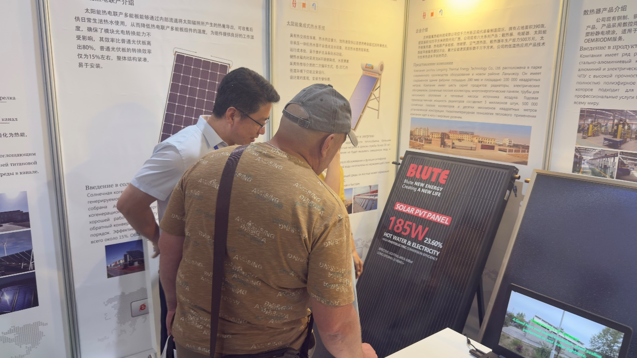 隴星“黑科技”產(chǎn)品——太陽能熱電聯(lián)產(chǎn)PVT光伏組件成為展會(huì)高人氣產(chǎn)品,吸引客戶關(guān)注。